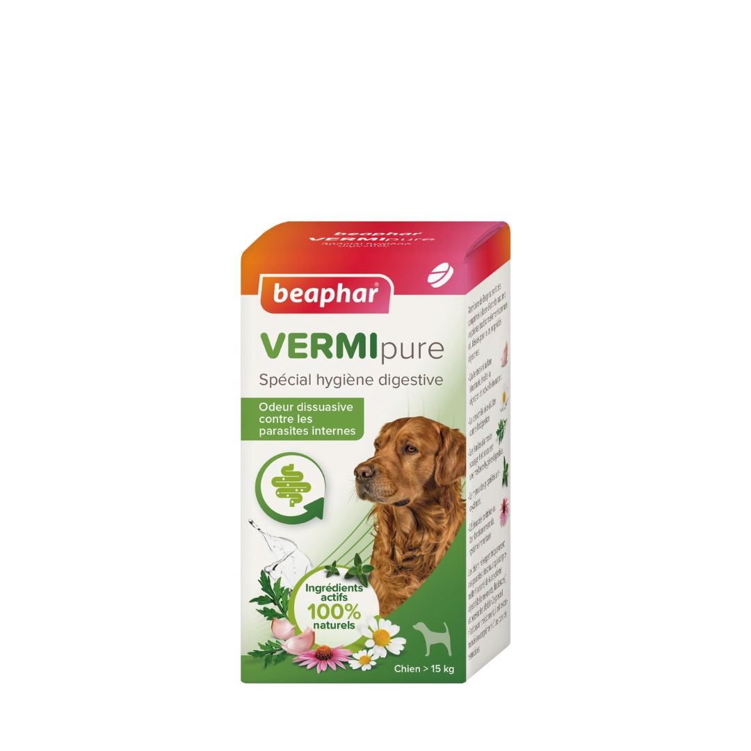 VERMIpure permet de protéger le système intestinal des chiens contre les parasites intestinaux qui causent diarrhées, ballonnements ou flatulences.